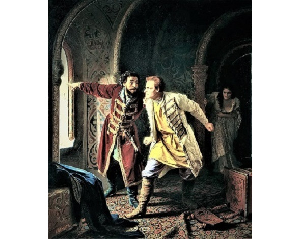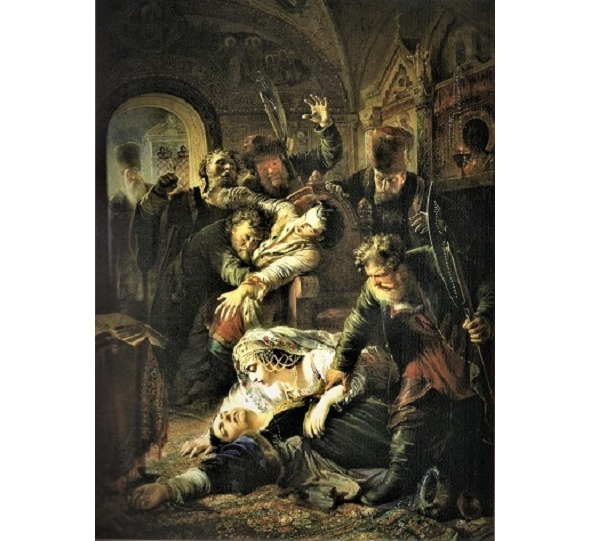 Агенты Дмитрия Самозванца убивают сына Бориса Годунова. Худ. К. Маковский