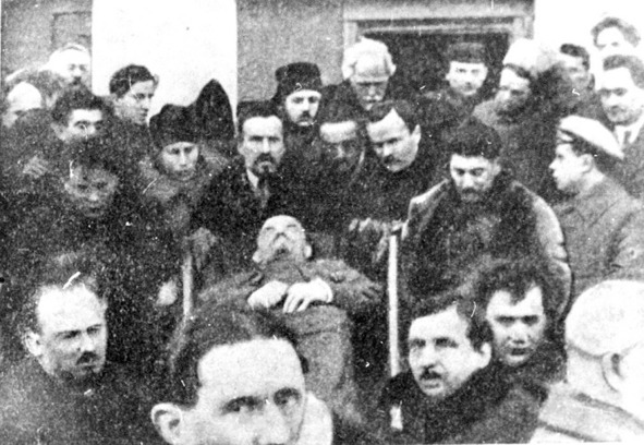 Соратники несут гроб, Сталин на заднем плане опустил голову