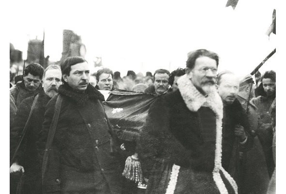 Ф. Э. Дзержинский, как «паровоз», во главе траурной колонны