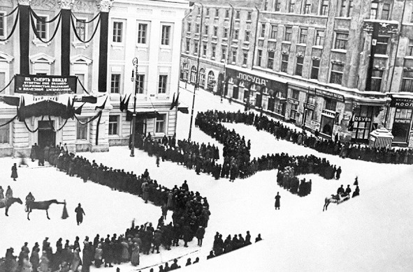 Две очереди на прощание с Лениным в Колонный зал Дома Союзов