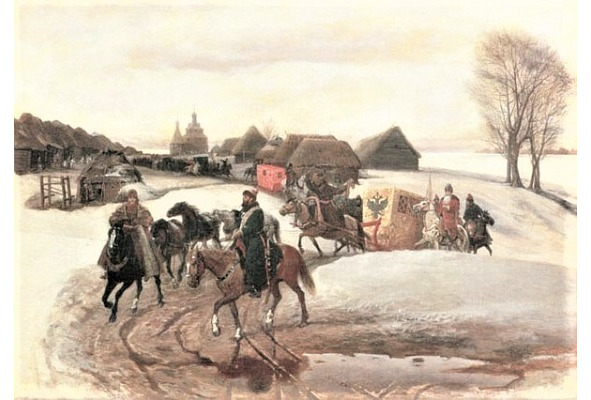 Счастливый царь следовал после невесты, его сопровождал распорядитель церемонии – тысяцкий и ближайшие бояре.
