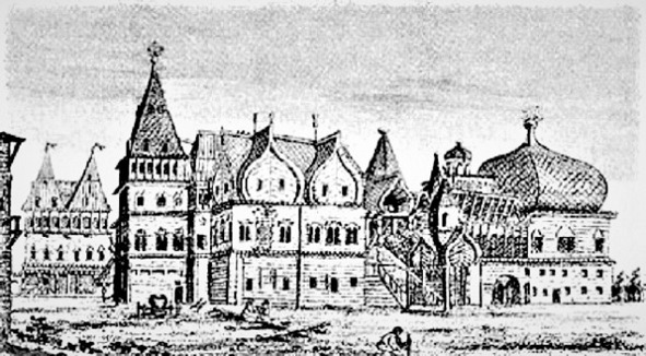 Царский терем в Коломенском. Гравюра Ф. Гильфельдинга. XVIII в.