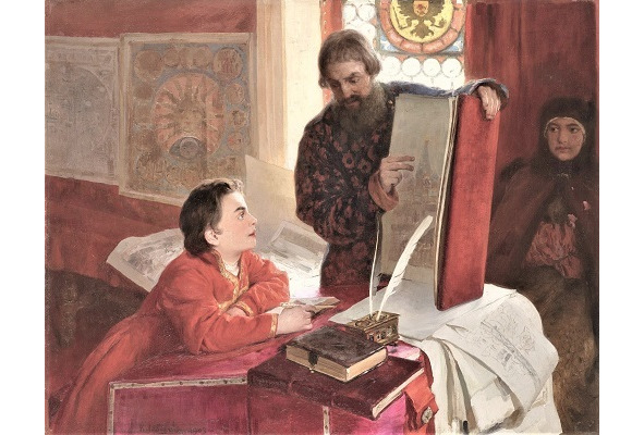 Новый царь, Фёдор Алексеевич Романов, (по матери – Милославский – прим. автора) старший единокровный брат и крёстный Петра, 12 марта 1676 года определил ему наставника – дьяка Челобитного Приказа Никиту Моисеевича Зотова.