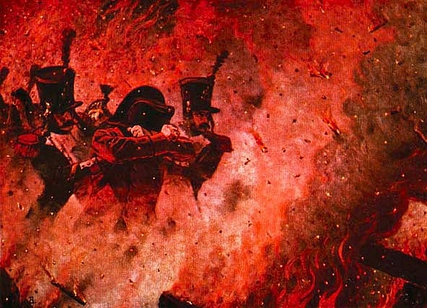 Однако, настоящая опасность, грозящая императору и его армии гибелью, ждала его впереди. В то время как по Москве разносились звуки «Марсельезы» в воздухе уже пахло гарью.