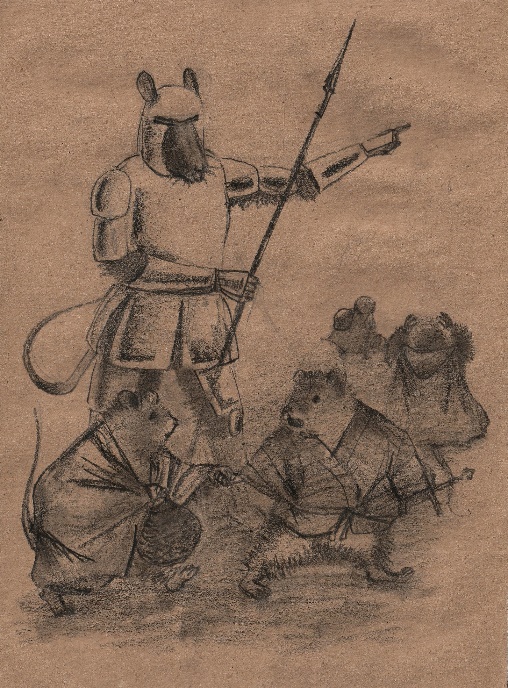 – Крысы у Озера! – подбежавший джунгарик-посыльный был без конверта, выпалив короткое донесение от разведки он тут же бездыханно свалился к ногам Клыкоскала и Хомы, пронзенный прилетевшей со стороны тыла стрелой. Командир и его подчиненный, окруженные отрядом бессменных мышаков-телохранителей приготовились к жаркой схватке.