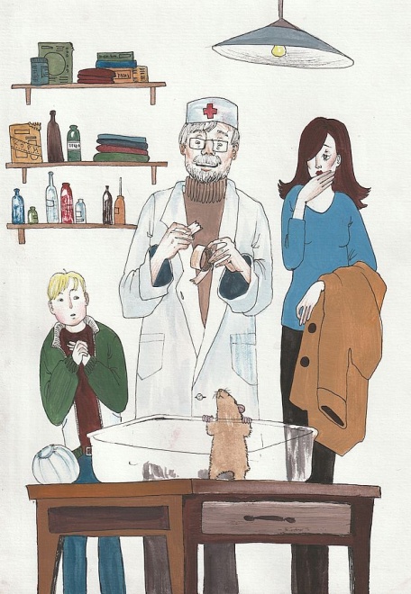 Мама с Колей попрощались, посадили хомячка в рюкзак и направились в магазин за шампунем. Прибыв домой, они, как и велел доктор, помыли шампунем хомяка (он был крайне недоволен и растерян одновременно, да так, что все время ходил в туалет) и усадив его в клетку, насыпали вкусного корма и налили свежую воду.