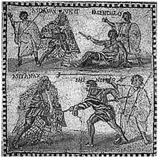 Римская мозаика с изображением сражающихся гладиаторов