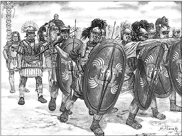 Традиционно принято считать, что до военной реформы, проведенной Гаем Марием, римское войско («легион» – поначалу он был только один, из него и состояла вся римская армия) представляло собой «вооруженную гражданскую общину» (лат. sociеtas armata). В этом ополчении (милиции) свободных граждан были обязаны служить (и служили), главным образом, составлявшие основную часть населения Римской державы свободные мелкие землевладельцы, покидавшие, в случае объявления войны, свои клочки земли, вооружавшиеся и экипировавшиеся за собственный счет. Вооружение римских граждан зависело от их имущественного ценза – иными словами, от их материального положения. Самые состоятельные римляне служили в коннице[29] (их-то первоначально и называли всадниками-«эквитами», хотя со временем ситуация изменилась), граждане победнее – в тяжелой пехоте (таких было большинство), еще менее состоятельные – в легкой пехоте.