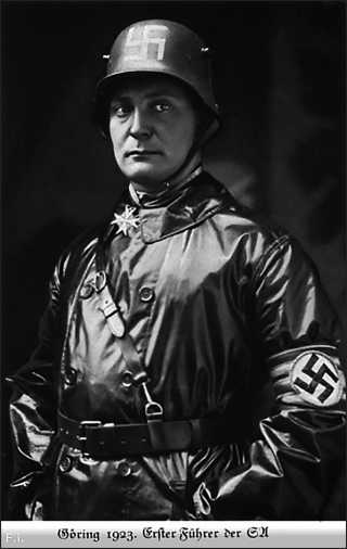«Спартаковцы – смелые бойцы» незамедлительно приняли ультиматум, написали извинение по всей форме, вернули летчикам захваченное оружие, и авиаполк благополучно вернулся в Дармштадт. Кстати, Геринг с подчиненными так и не отдали французам своих боевых машин, намеренно испортив их. Сохранилась фотография тех бурных лет, запечатлевшая будущего «Имперского маршала» гитлеровского Третьего рейха в характерной для многих бойцов белых добровольческих корпусов полувоенной форме, которую немцы окрестили метким словом «разбойничье штатское» («ройберцивиль»). На этом фото Герман Геринг изображен в стальной солдатской каске (образца 1916 года) с нарисованной на ней белой масляной краской левосторонней (именуемой также «лунной», или «женской») свастикой («ломаным», «крюковидным» или «гамматическим», крестом), в кожаном пальто, подпоясанном офицерским ремнем и перехлестнутом через плечо портупеей, с украшенной изображением свастики в белом круге и обозначающими звание горизонтальными полосками повязкой на левом рукаве и с мальтийским крестом высшего прусского военного ордена «За заслуги» на шее.