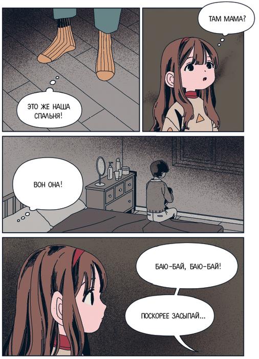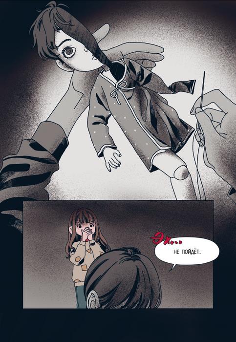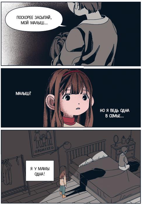 Мама вздохнула и отложила половинку. Половинка обездвиженной куклой шлёпнулась на кровать, а потом, вся скрюченная, упала на пол. От испуга Мия вытянула вперёд ладони. Только одной ладони у неё не было. И не только. У неё не было одной руки и одной ноги. Девочка посмотрела на себя в зеркало. Один глаз, половинка носа, половинка рта – в отражении на неё глядела половинка Мии!