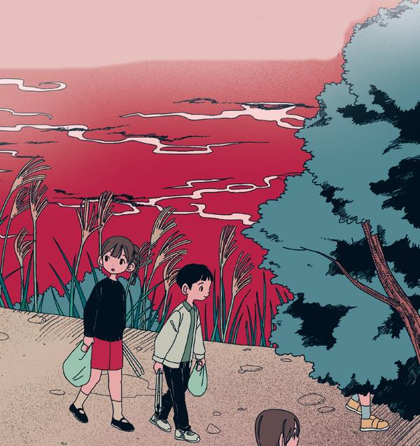 Ребята прозвали эту реку «Алый ручей». С наступлением тепла её воды окрашивались в красный цвет. Говорят, это из-за какого-то там планктона. В общем, что бы это ни было, но багряная вода, бурлящая под шапкой белого тумана, походила на мрачный кипящий котёл. Жуткое варево, из которого вот-вот появится повелитель царства мёртвых, чтобы наказать тех, кто плохо себя вёл.