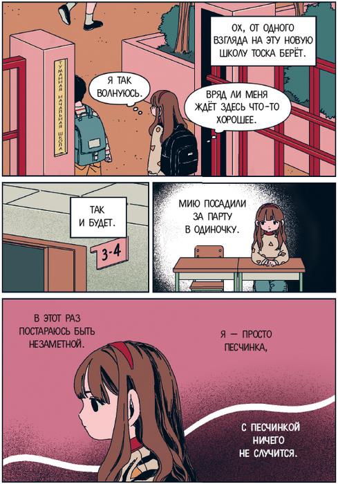 У Мии раньше тоже были такие представления о школе, когда она ходила в детский сад. Вспомнив это, она понуро опустила голову, а мальчик спросил: