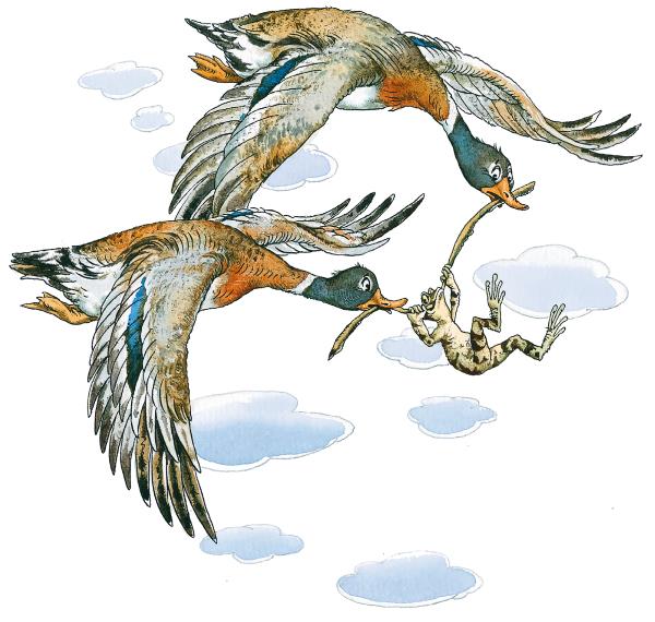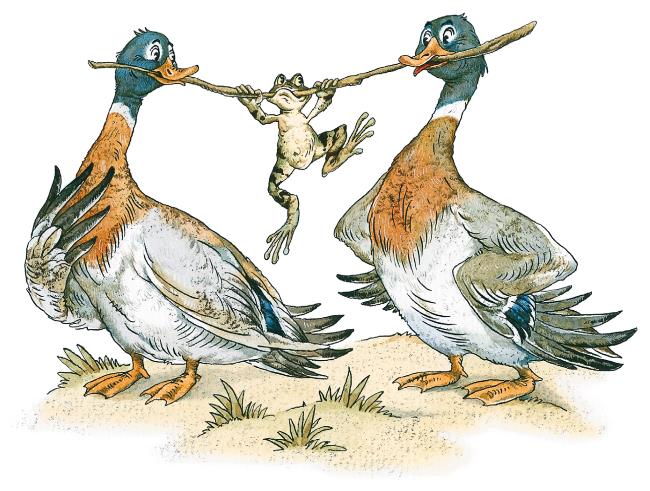 – Смотрите, смотрите, – кричали дети в одной деревне, – утки лягушку несут!