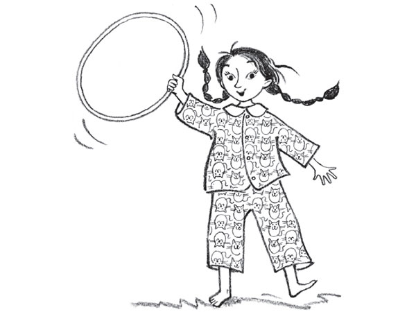 ‘I’m going to teach you some TRICKS for the audition!’ she announces cheerfully, still in her pyjamas and waving a hoop in the air.