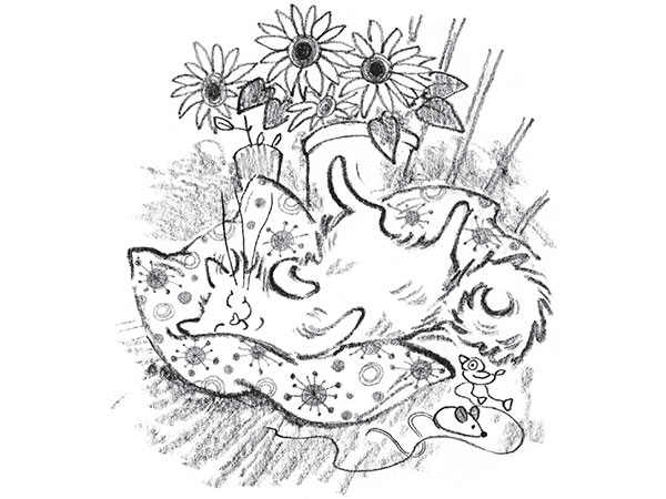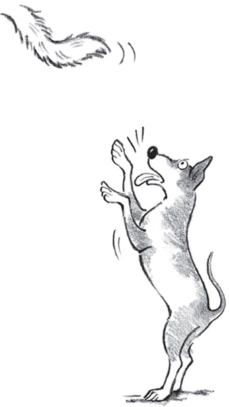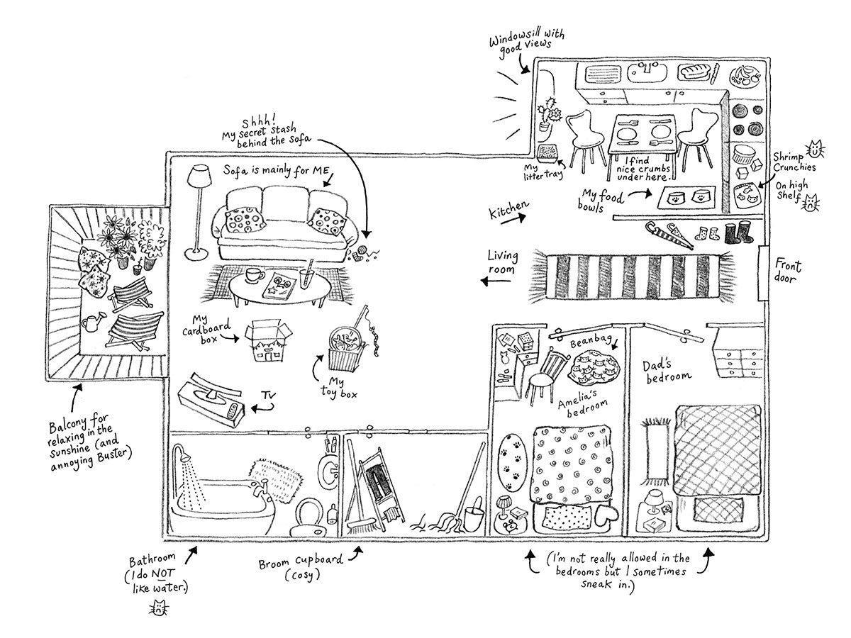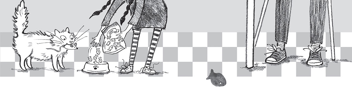 But I’ve stopped listening. I’m too busy thinking about my tea. I pick up my toy mouse, Squeaker, and I go into the kitchen where Amelia’s dad is working at the table.