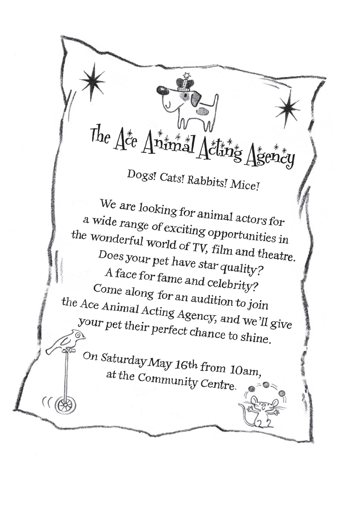 She shows her dad the acting-agency leaflet. ‘This is loads better. I’d still get to do exciting things, but it would be PIE in the spotlight, not me. Pie deserves to be a HUGE star and I’m going to help him!’