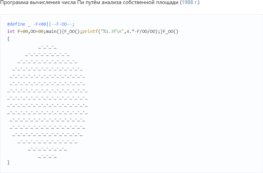 Это не яйцо, а пример вычисления числа Пи с помощью языка Си. Надеюсь, в курсе что такое Пи?). Что такое яйцо тоже в курсе я думаю, комментировать тут не буду)
