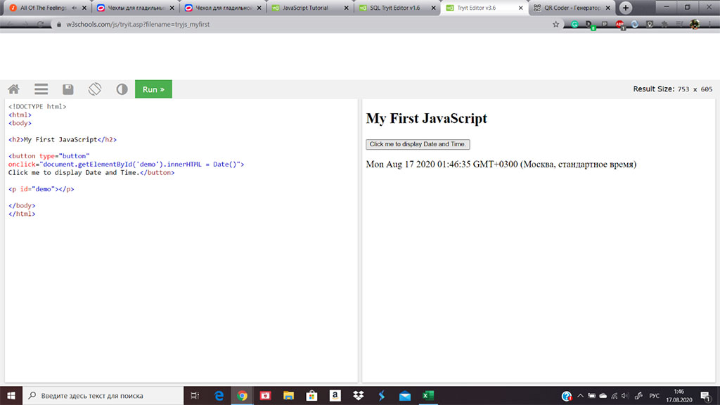 Соответственно с каждым этим пунктом работает Java Script. Например можно создать кнопку, которая будет что-нибудь делать, или сделать несколько полей для ввода информации и т.д. На примере ниже, простейший пример на javascript, который вы можете немного понять, даже не зная программирование.