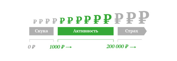 Суммы о 1000 до 200 000 рублей – это суммы, которые мотивируют человека, но при этом не вызывают растерянности и воспринимаются как реальные. На моих семинарах и тренингах мы определяем сумму этих границ и определяем настройку финансового термостата.