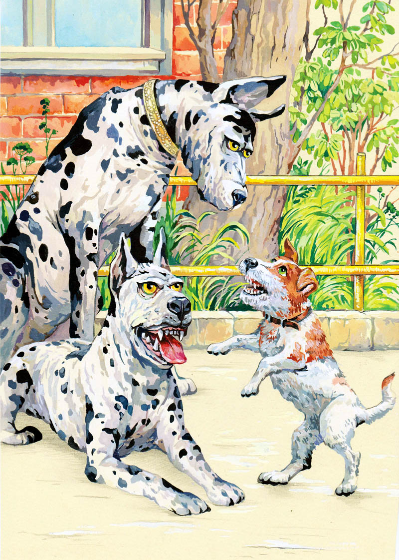 Однажды летом, подходя к своей пятиэтажке, Зоя Ивановна, ещё не старая вдова-пенсионерка, увидела, как два здоровенных дога терзают и рвут небольшую молодую собачку, забежавшую к ним во двор.