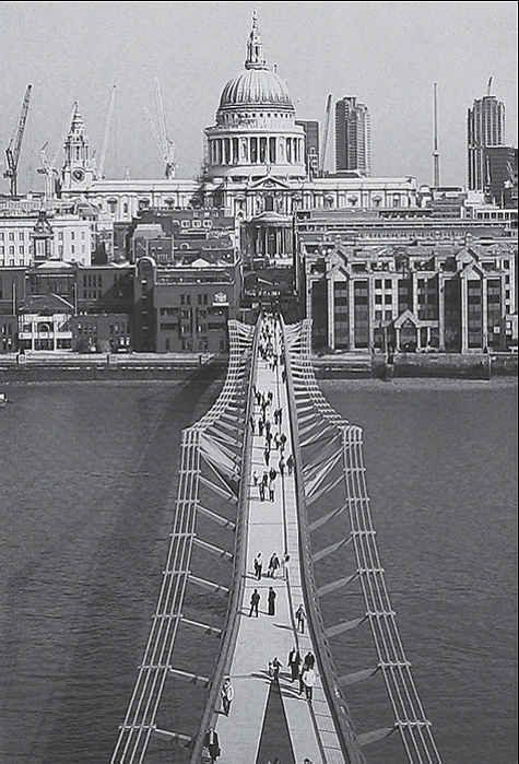 От древнейшего в Риме моста Фабриция до новейших мостов вроде лондонского Моста Тысячелетия, который связал площадь перед собором Св. Павла и новую галерею Тэйт, разместившуюся в залах бывшей электростанции, протянулась многовековая цепь дерзких инженерных решений. Норману Фостеру, автору Моста Миллениума, пришлось, однако, дополнительно укреплять его изящную конструкцию – ее надежность не подвергалась сомнению, но легкий эффект раскачивания, свойственный обычно подвесным мостам, пугал робких туристов.