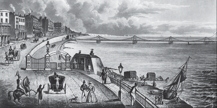 До конца XIX в. морские купания считались делом вредным и даже опасным для здоровья. Однако врачи советовали своим пациентам дышать морским воздухом. Сооружение, очень похожее на мост, тем не менее, мостом отнюдь не является. Это прогулочный мол в английском курорте Бат, до реконструкции.