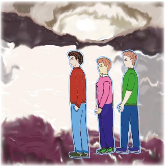 За дверью было холодноИ тьма их окружала,В звенящей тишинеВ мозгу у них звучало:«Вы в центре лабиринта,Что же вы хотите?».«Мы в школу собираемся,Домой, назад верните!»«Пройдите испытанье:Для всех троих – одно,Но каждому решатьПридётся всё равно.Решайте! И решенияДолжны у вас совпасть,Тогда домой и в школуВы сможете попасть.А если не получится —Домой возврата нет.Останетесь навечно —Такой вам мой ответ».Через мгновенье окаВ звенящей тишинеОстался из них каждыйС собой наедине.И снова голос прозвучал:«Внимательно смотрите!Вот – девочка. Она давноБлуждает в лабиринте.Она, как вы, домой спешит,И вы должны решить:Кому из вас вернуться?Кто дома будет жить?Само решение для вас —Неважно, безопасно.Вслепую вы принять его,Должны единогласно.Всё – испытанье началось!Должны вы дать ответНа мой вопрос, пока горитНад вами жёлтый свет».На них смотрела девочка —В её больших глазахЧитались боль, смирениеПечаль, мольба и страх.И каждый думал: «Как же быть?Нельзя нам ошибаться!Я хочу девочку спасти!Но как друзья решатся?».Вот загорелся жёлтый свет —Нужно решать, пора.И каждый думал: «Как мне быть?».Вдруг мысль их обожгла:«Если я не спасу её,То жизнь её прервётся!Я не смогу без чести жить,Так пусть она спасётся!».И жёлтый свет уже погас,Они едва держались,Но радость сил им придала,Они в слезах обнялись.«Вы испытание прошли —Решенье ваше есть.Вернулась девочка домой,А вы остались здесь».