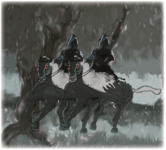 «Должны вернуться мыСудьбе наперекор —Чтоб выбраться из тьмыВ таинственный шатёр».«Дорога – это время,И нужно нам назадТащить сомнений бремя,Шагая наугад».«Давайте мы с дорогиВ сторонку отойдём,Тревожно стало что-то,Словно плохого ждём».Едва они успелиВ сторонку отойти,Как всадники угрюмыеЯвились на пути.«Куда они пропали?Ведь только что здесь были!И где теперь искать их?Что тут они забыли?»«Не суетись, найдём их,От нас им не уйти —Пока они фантомы,Нетрудно их найти».«Наверное, вперёд пошли,Все в будущее прутся.Глупцы, надеются, что тамИх ждут и не дождутся!»«Вот только бы с дороги,В сторонку не сошли,А то придётся туго».«Хорош болтать, пошли!»