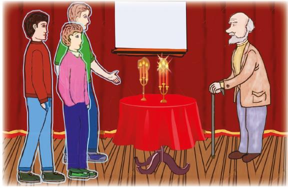 Вошли, и в полумракеВопрос из ниоткуда:«Привет! Смелей, гуляки!Заинтересовало чудо?».«Мы входим без опаски,Чудес на свете нет.И это просто сказки…Но всё же, в чём секрет?»К ним подошёл с улыбкойЗагадочный старик.«Работа над ошибкой», —Сказал и как-то сник.Ребята с удивлениемНа старика глядели:«Такие чудесаНам в школе надоели!Идём мы завтра в школу.Такой аттракционСовсем не по приколу,Неинтересен он!».«Постойте, не спешите,Ошибки-то другие,Вы вспомните, что в жизни,Плохого натворили.Обидели кого-тоНарочно иль невольно,Вы можете исправитьЧтобы не сделать больно.«И что, потом ошибкуОбиженный забудет?»«Да, вы ж её исправитеЕё уже не будет».«Вот это да, вот здорово!Это ж подумать только!»«Такого не бывает», —Засомневался Колька.«А вы просто попробуйте,Вы всё равно гуляете,Ведь если не найдёте,То и не потеряете».