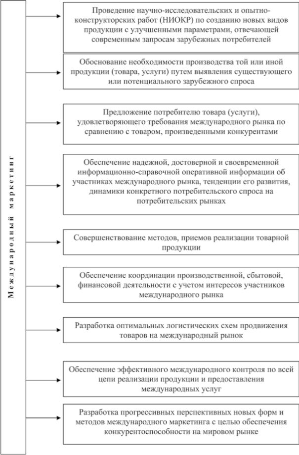 Предпосылки возникновения международного маркетинга обобщены и отражены на схеме (рис. 4). Требования международного маркетинга обязывают разрабатывать производственные программы по выпуску востребованной продукции с учетом потребителей.