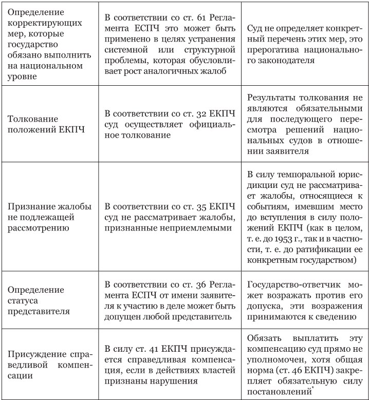 Таблица 1.7. Структура полномочий ЕСПЧ в части воздействия на национальную правовую систему