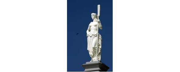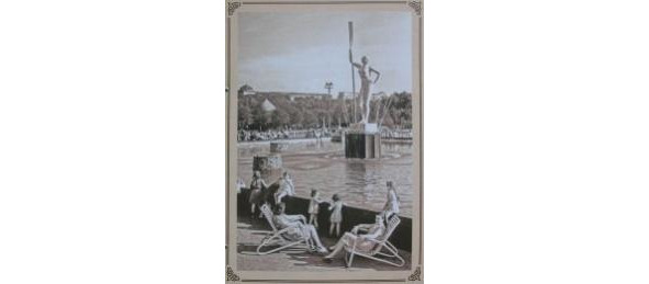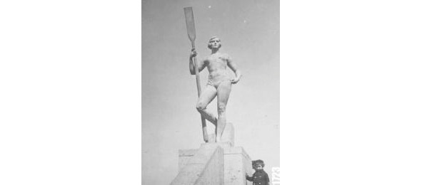 «Девушка с веслом» -скульптура Ивана Шадра, ярчайший пример советского искусства. Создана в 1934—1936 для ЦПКиО им. Горького в Москве. Скульптору позировала Вера Волошина, студентка Московского Института физкультуры. Первый вариант статуи, простояв некоторое время в ЦПКиО, был отправлен в городской парк в Луганск. И. Д. Шадр создал для ЦПКиО новый, увеличенный вариант, установленный на центральной площадке парка. Московский оригинал был разрушен в 1941 при бомбёжке. Вера Волошина погибла в том же 1941. Впоследствии дешёвые гипсовые копии были массово установлены практически в каждом городе СССР. Википедия.