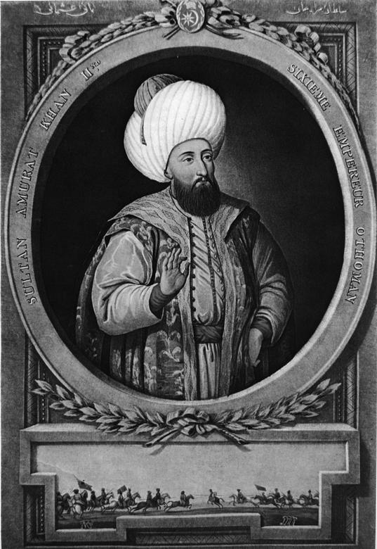 Лишь его сын Мурад II[29], вступивший на престол в 1421 году, смог вернуть османам утраченные в Европе территории. По свидетельству современников, Мурад был человеком энергичным и благочестивым. Даже византийские писатели с уважением отзывались о его справедливости и человеколюбии, с которым он относился к побежденным.