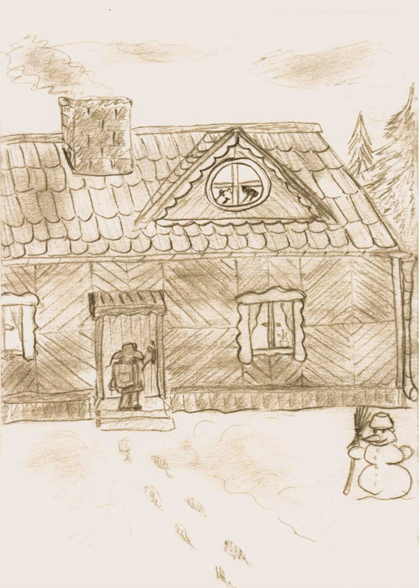 Друзья натерли лыжи свечным огарком, чтобы лучше скользить по снегу, оделись и вышли из домика. Мороз с озорством пощипывал лицо, под ногами глухо скрипел снег – погода была чудесная. Маленький отряд двинулся вперед. Старый ворон кружил в воздухе, указывая дорогу.