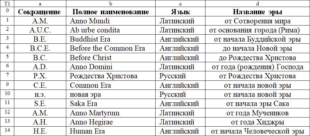 1.8. Многие народы вели хронологию, используя собственные системы летоисчисления, не похожие на другие. Сегодня известны и неплохо изучены несколько десятков эр. Сколько их было всего на Земле, вряд ли можно точно установить. Наиболее распространенным эрам были присвоены собственные сокращенные наименования, состоящие из нескольких букв.
