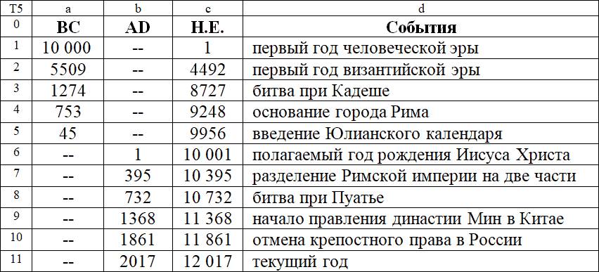 1.18. Так что указать точную историческую дату порой бывает очень непросто. На вопрос, какой сейчас год, скорее всего, назовут 2017, что не совсем верно, так как следовало бы сказать 2017 год от Рождества Христова по григорианскому календарю. При сравнении нескольких самых распространённых сегодня летоисчислений очевидно отсутствие совпадений между ними.