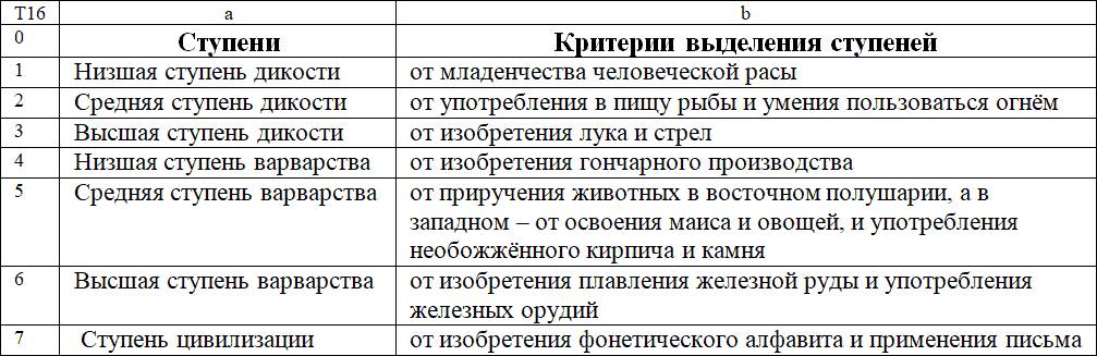 1.71. В 19s AD американский этнограф и историк Льюис Морган создал двухуровневую теорию периодизацию истории, состоящую из трёх периодов: дикости, варварства и цивилизации. Периоды дикости и варварства были им разделены на три ступени: низшая, средняя и высшая. Каждая ступень, по мнению Л. Моргана, связана с важнейшими достижениями человечества.