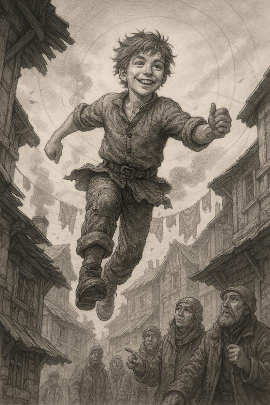 Бегун был невысокий, сухощавый, почти прозрачный от худобы. Единственный ребенок в городе, он всегда привлекал к себе взгляды. Его кожа имела сероватый оттенок, словно на ней всегда оставалась шахтерская пыль, а волосы – короткие, взъерошенные, цвета пепла, будто он только что вынул голову из останков старого костра. Этот странный оттенок выделял его среди всех, заставляя порой горожан поглядывать с любопытством и настороженностью. Глаза – большие, серые, с хитринкой, вечно ищущие, куда бы залезть, чтобы схватить и как бы выбраться из очередной передряги. Он был тем, кто знал всех и кого многие были готовы назвать своим. Легкий, быстрый, изворотливый – идеальный крысеныш Крыгорода.
