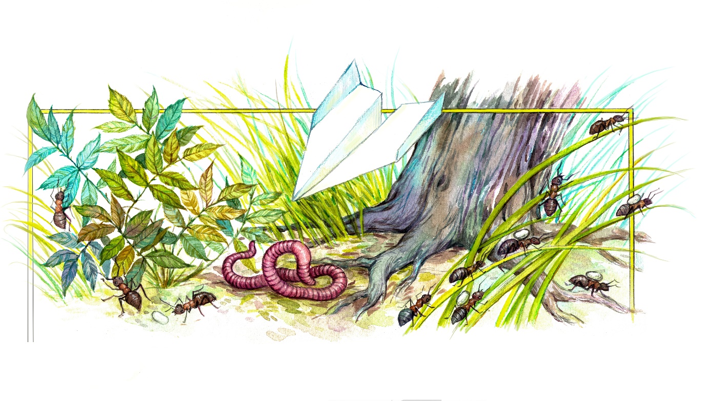 А ветер дул всё сильнее и сильнее. Друзья-насекомые с трудом удерживали бумажную громадину на ветке, вцепившись в неё лапами и челюстями-мандибулами.