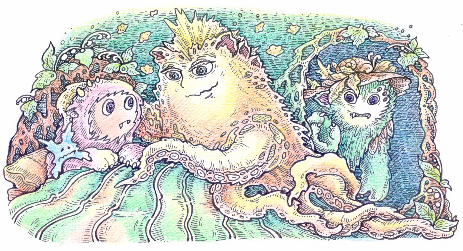 – Хватит в людей играть! – повысила голос мама, уперев щупальца в колышущиеся бока. – Ребёнок уже по ночам не спит, кошмары о ваших людях снятся! Поиграйте во что-нибудь спокойное, как все нормальные чудища. В драконов, оборотней или в упырей хотя бы!
