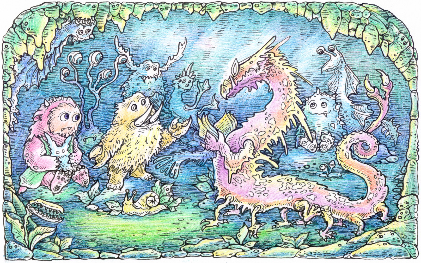 – Грызана! Проходи! – Хватьяна Кусановна, учительница младших классов, проводила Грызану за лапку к поросшему мхом камню. Остальные ученики уже сидели на своих валунах, готовые к занятиям.