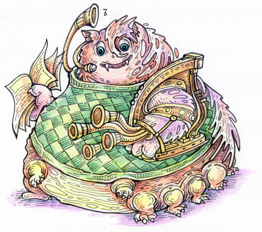 – Мой папа очень сильный! Он работает хлюподавом на Душных болотах. Его работа очень важная. Если не давить хлюпов, то они помешают вырасти корявочникам, гнусеницы расплодятся и заполнят наш город.