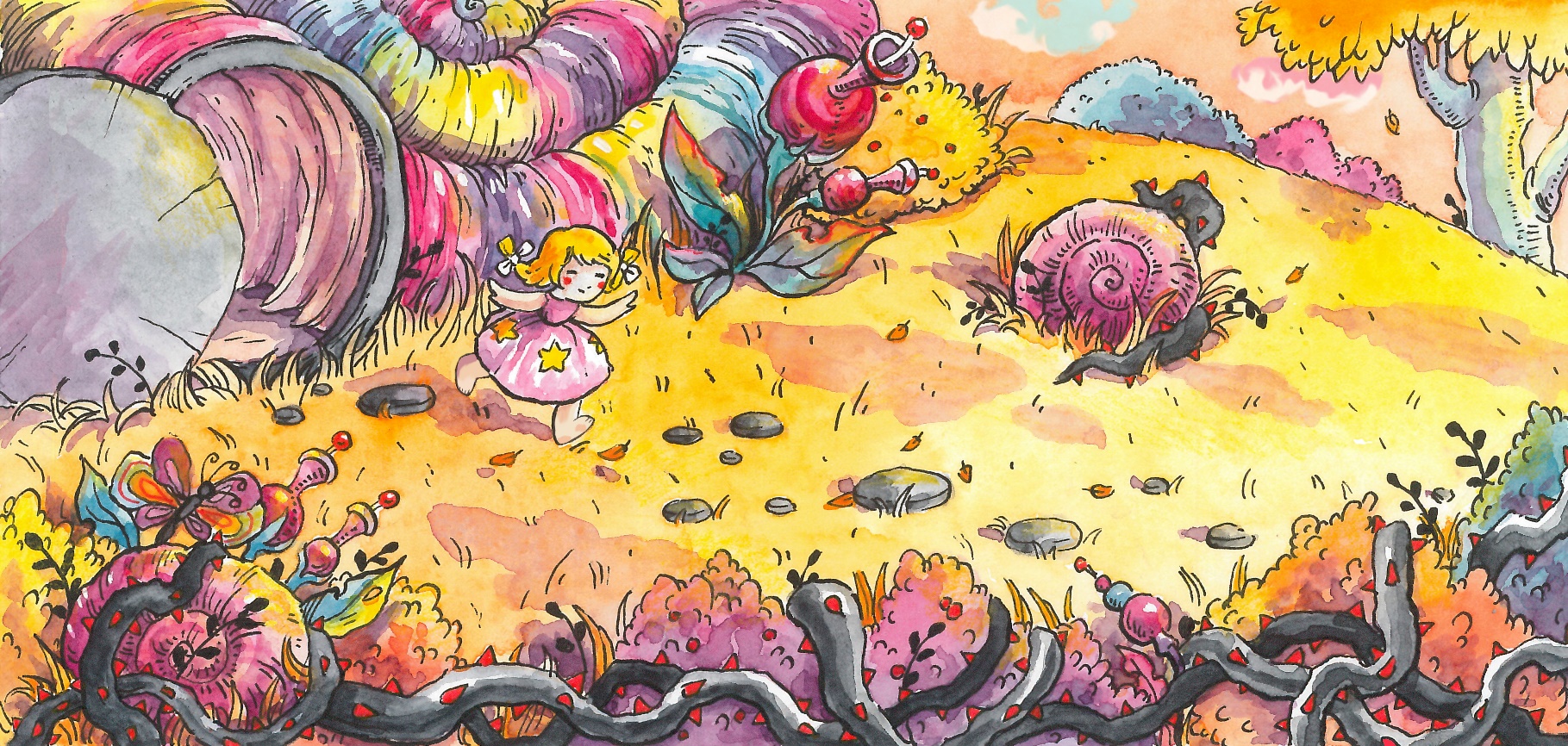 Солнечный лучик заглянул в круглое окошко и пощекотал щёку Лисаны: «Вставай, соня!». Она зевнула, сладко потянулась и похлопала Бебешу по боку. Тот поёрзал в кроватке, поскулил, но просыпаться отказался. Лисана сменила заляпанный комбинезон на свежее платье со звёздочками и побежала умываться к ручью. Мама Белизовета уже колдовала над завтраком – заворачивала политые соплеслюнями ягоды земляпихи в длинные голубые листья лебедыни.