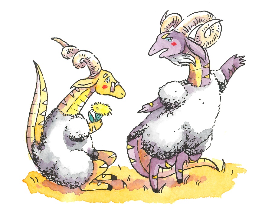 – «Бггхрааа!», «бггхрааа!» – противные крики прямо над головами баранозавров заставили их пригнуться к земле. В колючках, опутавших ветви тянувшихся к небу баодедов, свили уродливые гнёзда летающие твари. Они были похожи на ярких птиц с синими спинами и красными брюшками, только вместо клювов у них над широкими пастями торчали хоботы, вместо ног – три пары коротких тараканьих лап. Твари летали над баранозаврами, пытаясь ухватиться хоботами за рога.