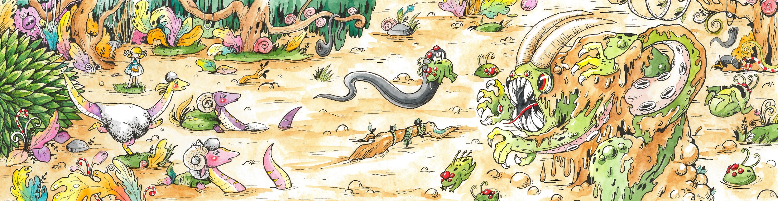 Вдруг болото вспучилось огромным пузырём. Пузырь рос всё выше и выше, а потом с глухим хлопком лопнул! Из-под болотной жижи, раскидывая змеявок и голожаб, выбралось нечто рогатое, клыкастое, когтистое и горбатое.