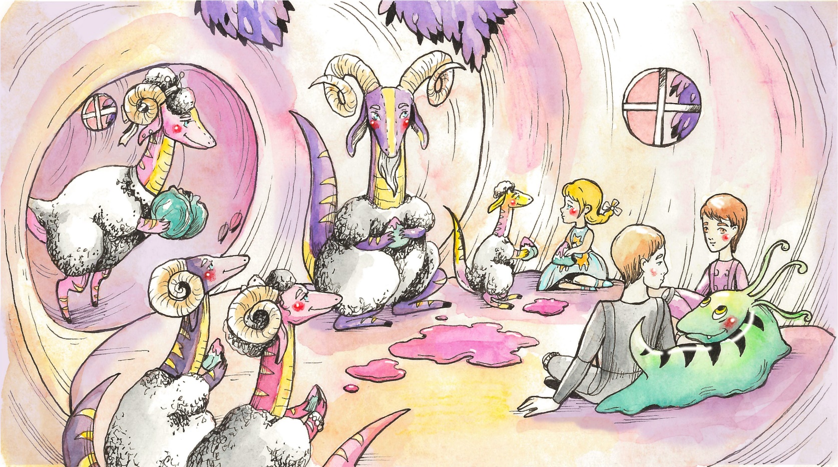 Через полчаса вся компания уже сидела у баранозавров дома и обедала. Бебеша обрадовался новым гостям и крутился вокруг, обильно вымазывая их соплеслюнями. Лисанины родители недоумённо наблюдали, как та уплетает за обе щеки капустосаны, покрытые тянущейся розовой слизью. Сами они от угощения тактично отказались.
