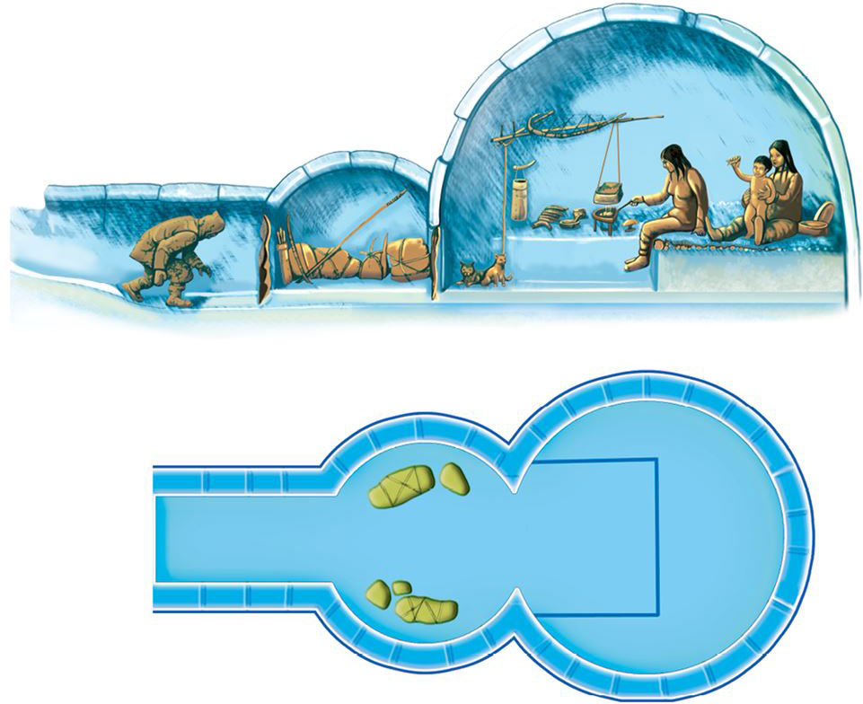 3 – жилищу придавалась форма купола, причем для того, чтобы в иглу было светло, в качестве одного из блоков использовали кусок пресного льда;