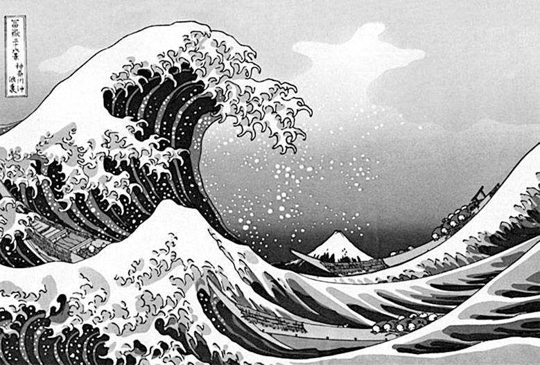 «Большая волна в Канагава» из серии гравюр художника Кацусика Хокусая «Тридцать шесть видов Фудзи», где на всех гравюрах присутствует изображение этой священной горы Японии.