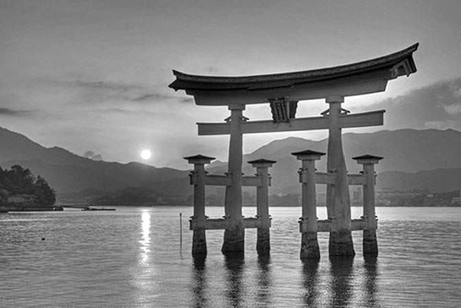А вот такой в Японии закат. Тории святилища Ицукусима во время вечернего прилива.