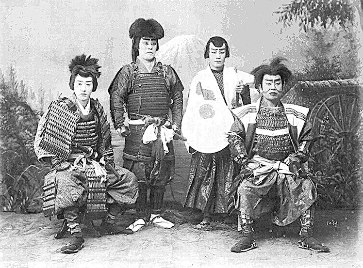 Актёры кабуки, изображающие самураев в доспехах, 1880 г. Раскрашенная фотография. Токийский национальный музей.